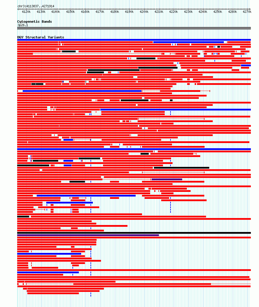 Variant DetailsVariant: dgv1599n166 | Internal ID | 22801498 | | Landmark | | | Location Information | | | Cytoband | 3p26.1 | | Allele length | | Assembly | Allele length | | hg38 | 158078 | | hg19 | 158078 |