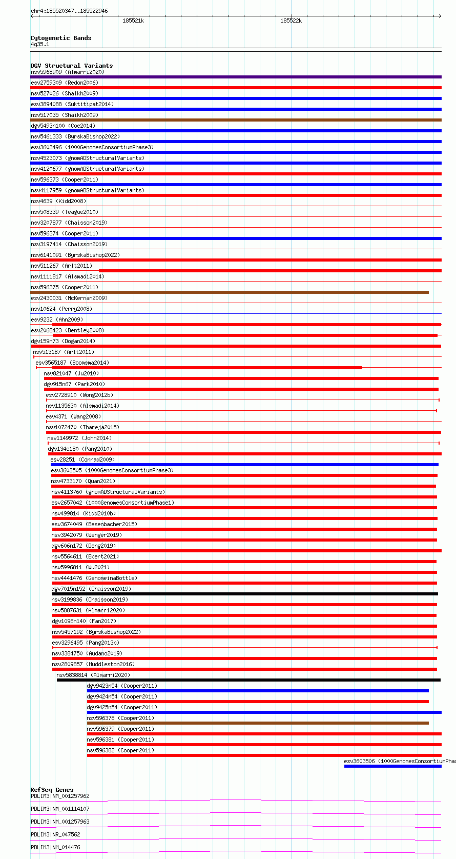 Variant DetailsVariant: dgv159n73| Internal ID | 22782765 | | Landmark | | | Location Information | | | Cytoband | 4q35.1 | | Allele length | | Assembly | Allele length | | hg38 | 2600 | | hg19 | 2600 |