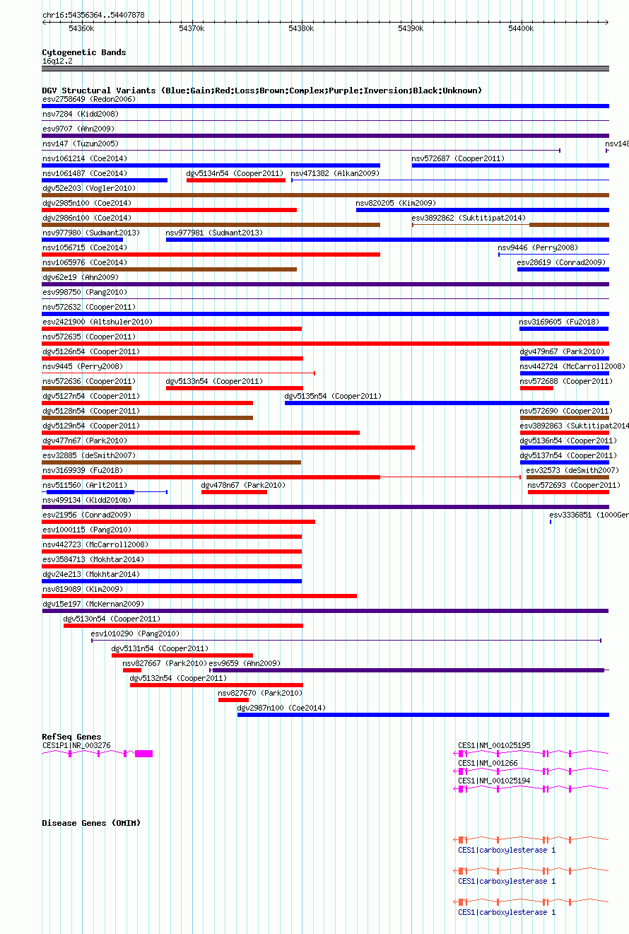 Variant DetailsVariant: dgv15e197| Internal ID | 22757718 | | Landmark | | | Location Information | | | Cytoband | 16q12.2 | | Allele length | | Assembly | Allele length | | hg38 | 51515 | | hg19 | 51515 | | hg18 | 51515 |