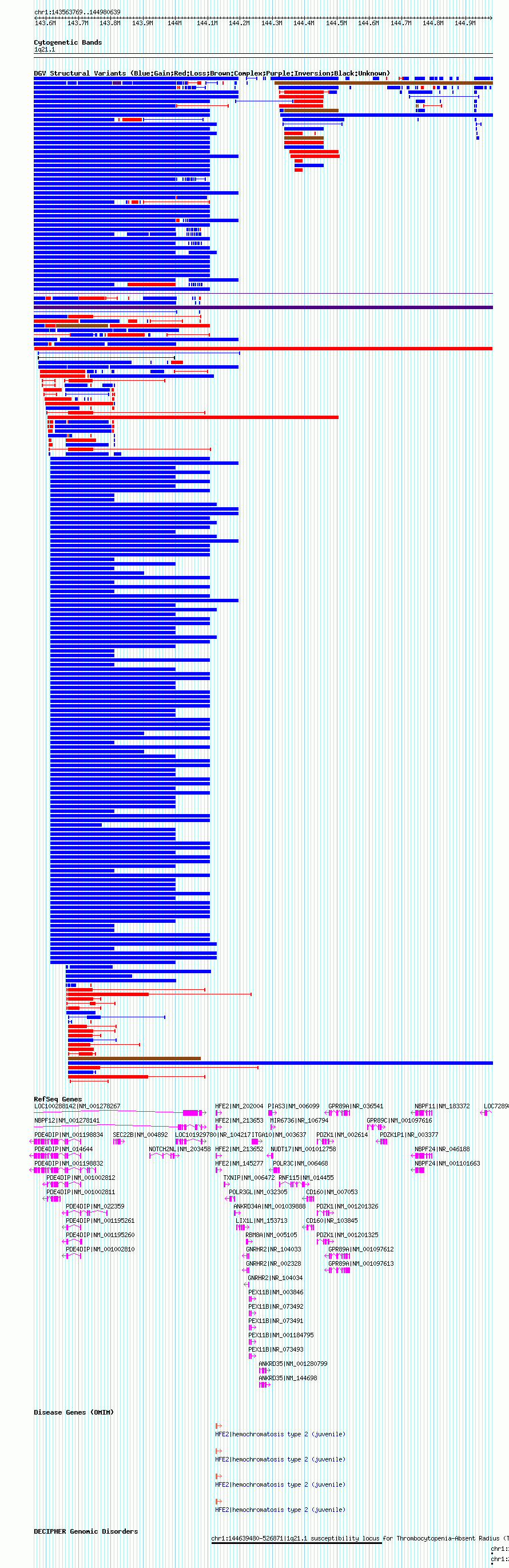 Variant DetailsVariant: dgv15n16 | Internal ID | 22765912 | | Landmark | | | Location Information | | | Cytoband | 1q21.1 | | Allele length | | Assembly | Allele length | | hg19 | 1661604 | | hg18 | 1416871 |