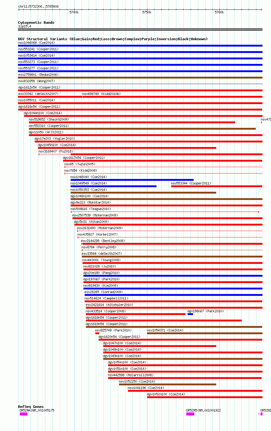 Variant DetailsVariant: dgv1616n54| Internal ID | 22769511 | | Landmark | | | Location Information | | | Cytoband | 11p15.4 | | Allele length | | Assembly | Allele length | | hg38 | 33501 | | hg19 | 33501 | | hg18 | 33501 |