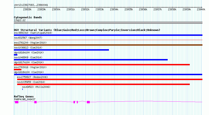 Variant DetailsVariant: dgv1618n100| Internal ID | 22787705 | | Landmark | | | Location Information | | | Cytoband | 13q12.12 | | Allele length | | Assembly | Allele length | | hg38 | 12959 | | hg19 | 12959 | | hg18 | 12959 |