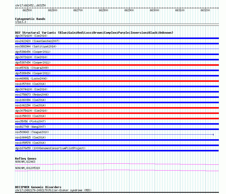 Variant DetailsVariant: dgv1676e59| Internal ID | 22762896 | | Landmark | | | Location Information | | | Cytoband | 17p13.3 | | Allele length | | Assembly | Allele length | | hg38 | 799 | | hg19 | 799 | | hg18 | 799 |