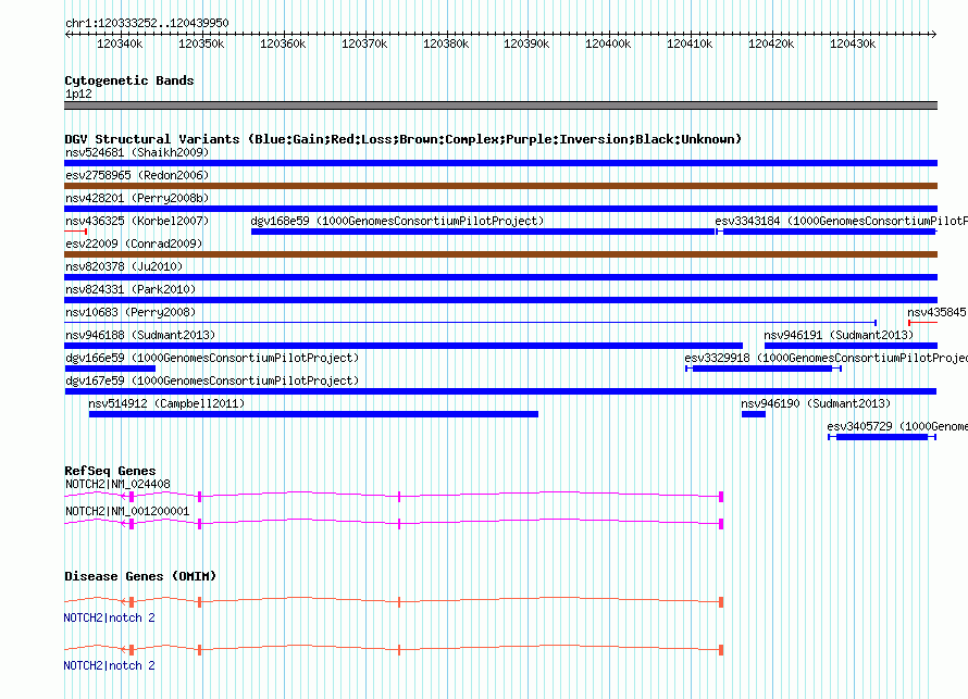 | | Variant Type | CNV duplication | | Copy Number | | | Allele State | | | Allele Origin | | | Probe Count | | | Validation Flag | | | Merged Status | M | | Merged Variants | | | Supporting Variants | esv3424178, esv3389755 | | Samples | NA12878, NA12892 | | Known Genes | NOTCH2 | | Method | Sequencing | | Analysis | | | Platform | Illumina | | Comments | | | Reference | 1000_Genomes_Consortium_Pilot_Project | | Pubmed ID | 20981092 | | Accession Number(s) | dgv167e59