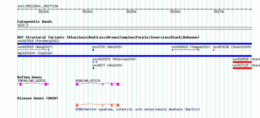 Variant DetailsVariant: dgv167n100| Internal ID | 20151783 | | Landmark | | | Location Information | | | Cytoband | 1p32.3 | | Allele length | | Assembly | Allele length | | hg38 | 53339 | | hg19 | 53339 | | hg18 | 53339 |