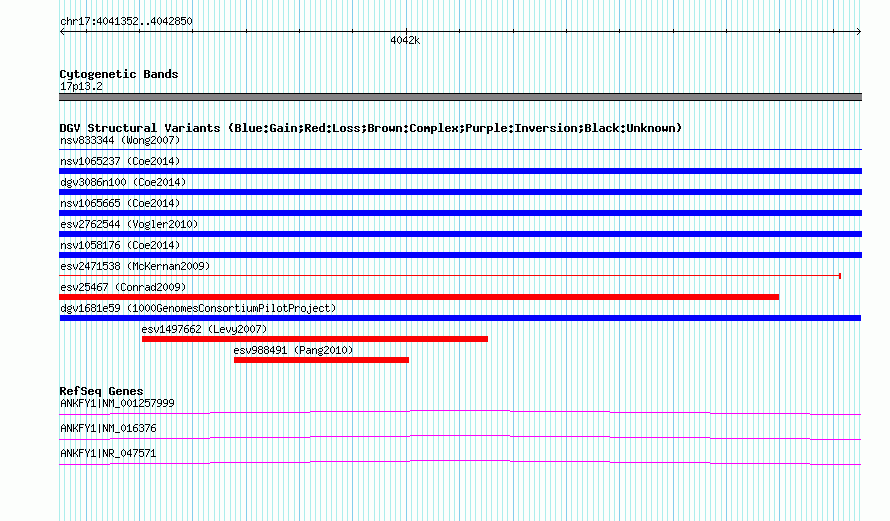 Variant DetailsVariant: dgv1681e59| Internal ID | 22762901 | | Landmark | | | Location Information | | | Cytoband | 17p13.2 | | Allele length | | Assembly | Allele length | | hg38 | 1499 | | hg19 | 1499 | | hg18 | 1499 |