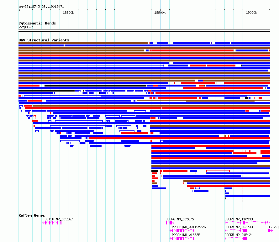 Variant DetailsVariant: dgv169n111Internal ID | 20163898 | Landmark | | Location Information | | Cytoband | 22q11.21 | Allele length | Assembly | Allele length | hg38 | 274066 | hg19 | 274066 |