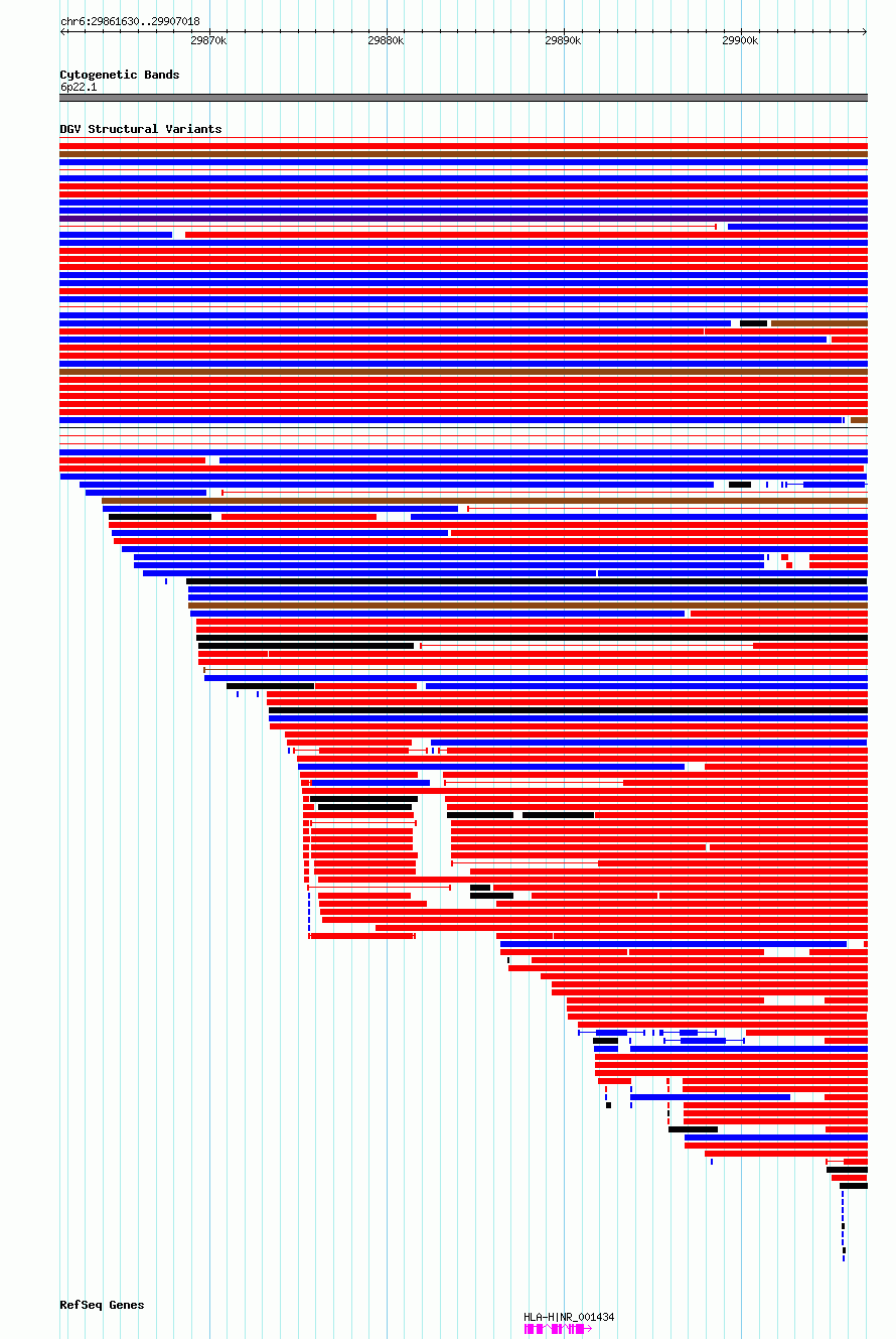 Variant DetailsVariant: dgv1727e212 | Internal ID | 22784654 | | Landmark | | | Location Information | | | Cytoband | 6p22.1 | | Allele length | | Assembly | Allele length | | hg38 | 45389 | | hg19 | 45389 |