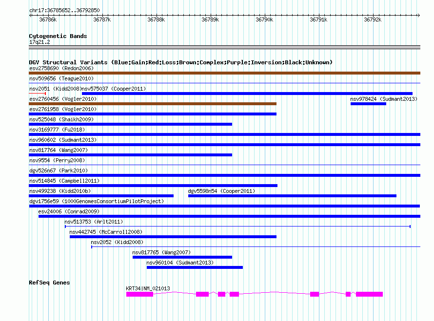 Variant DetailsVariant: dgv1756e59| Internal ID | 22762976 | | Landmark | | | Location Information | | | Cytoband | 17q21.2 | | Allele length | | Assembly | Allele length | | hg38 | 7199 | | hg19 | 7199 | | hg18 | 7199 |