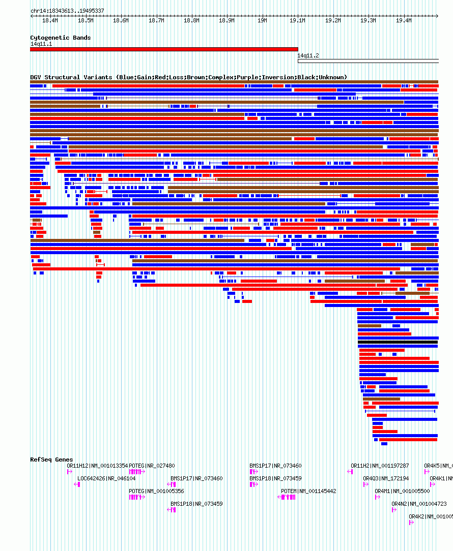 Variant DetailsVariant: dgv1757n100| Internal ID | 22787844 | | Landmark | | | Location Information | | | Cytoband | 14q11.1 | | Allele length | | Assembly | Allele length | | hg38 | 1460203 | | hg19 | 1151885 | | hg18 | 1151725 |