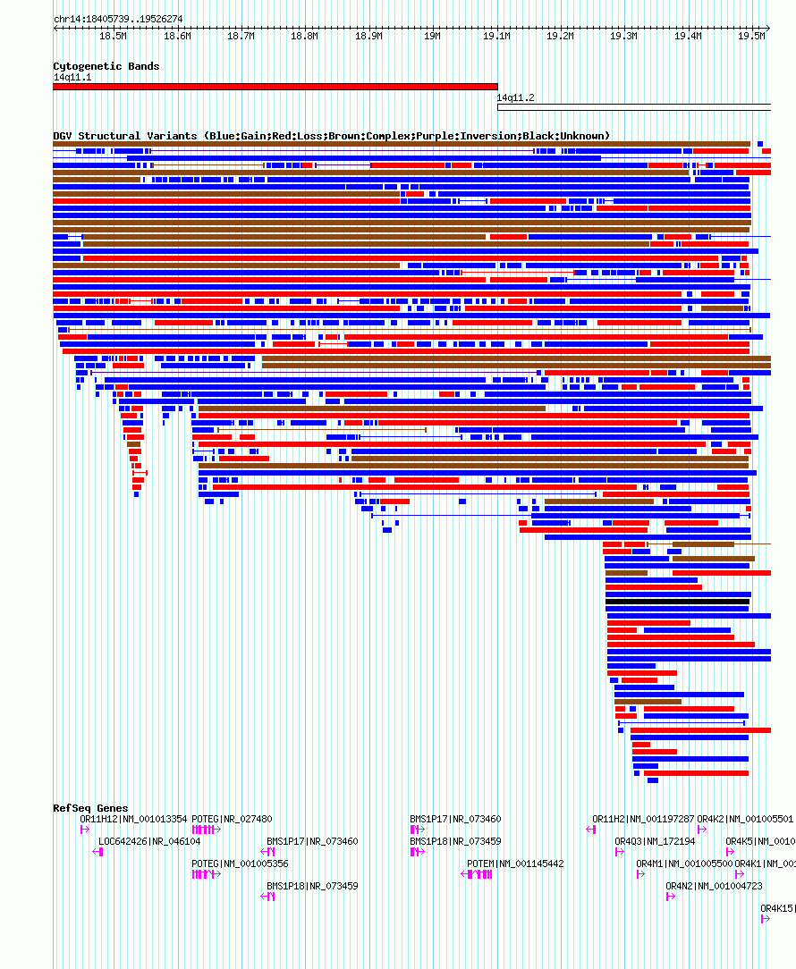 Variant DetailsVariant: dgv1759n100 | Internal ID | 22787846 | | Landmark | | | Location Information | | | Cytoband | 14q11.1 | | Allele length | | Assembly | Allele length | | hg38 | 1429014 | | hg19 | 1120696 | | hg18 | 1120536 |