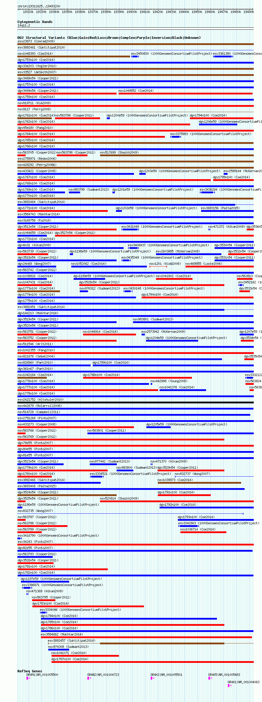 Variant DetailsVariant: dgv1782n100| Internal ID | 22787869 | | Landmark | | | Location Information | | | Cytoband | 14q11.2 | | Allele length | | Assembly | Allele length | | hg38 | 181576 | | hg19 | 181576 | | hg18 | 181576 |