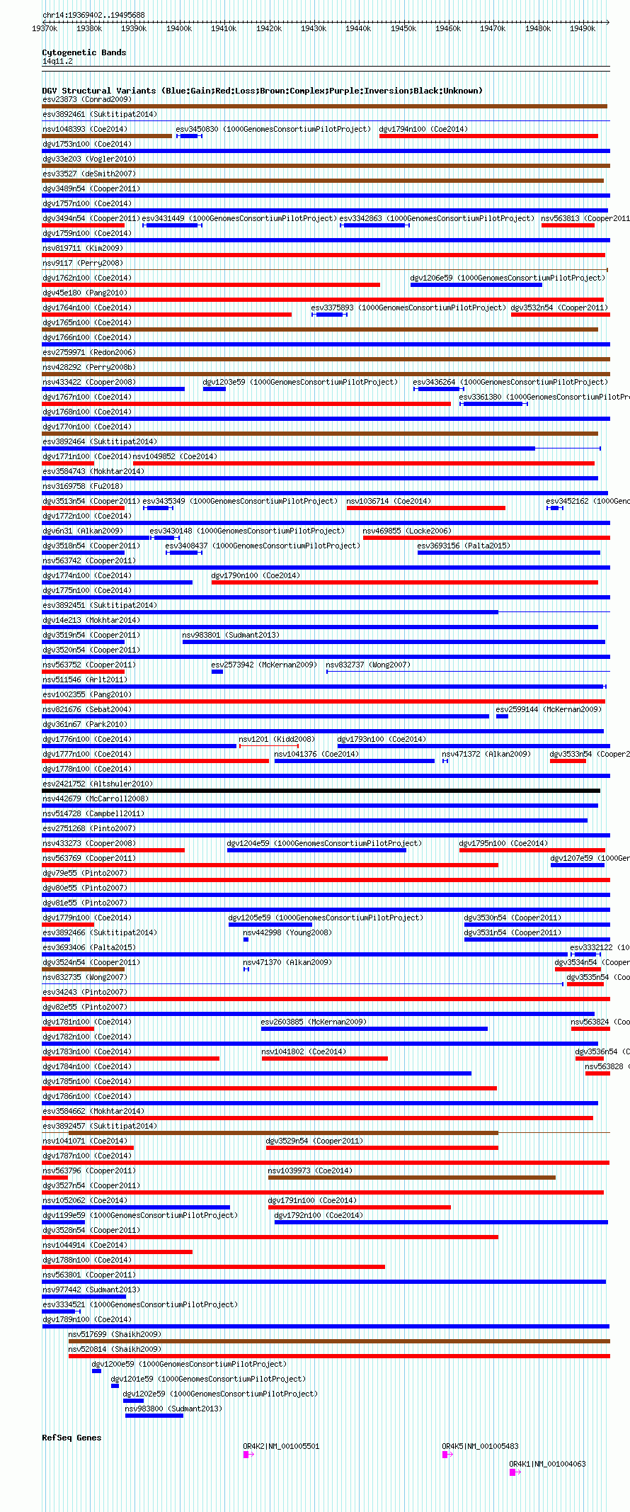 Variant DetailsVariant: dgv1789n100| Internal ID | 22787876 | | Landmark | | | Location Information | | | Cytoband | 14q11.2 | | Allele length | | Assembly | Allele length | | hg38 | 126287 | | hg19 | 126287 | | hg18 | 126287 |
