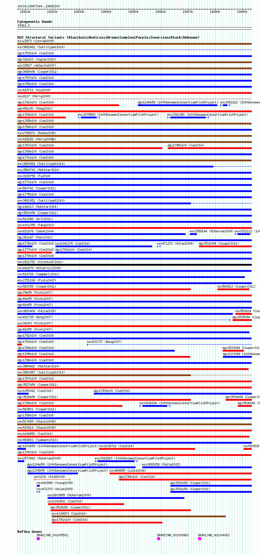 Variant DetailsVariant: dgv1790n100| Internal ID | 22787877 | | Landmark | | | Location Information | | | Cytoband | 14q11.2 | | Allele length | | Assembly | Allele length | | hg38 | 86057 | | hg19 | 86057 | | hg18 | 86057 |