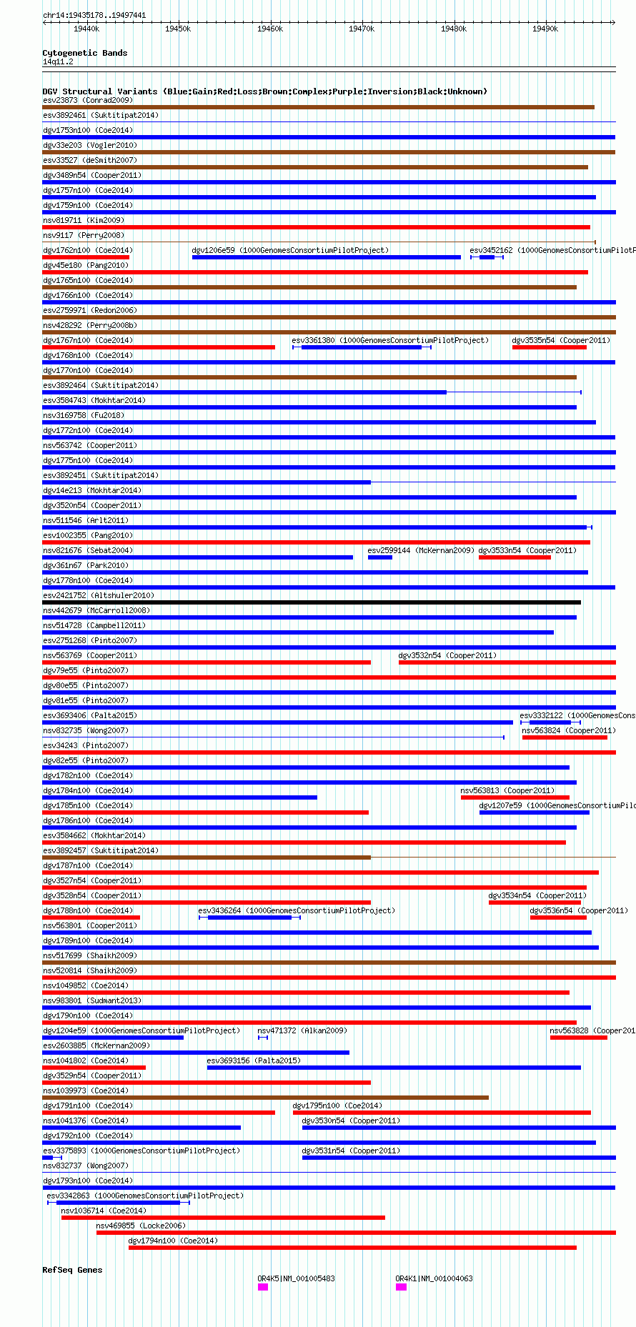 Variant DetailsVariant: dgv1793n100| Internal ID | 22787880 | | Landmark | | | Location Information | | | Cytoband | 14q11.2 | | Allele length | | Assembly | Allele length | | hg38 | 62264 | | hg19 | 62264 | | hg18 | 62264 |