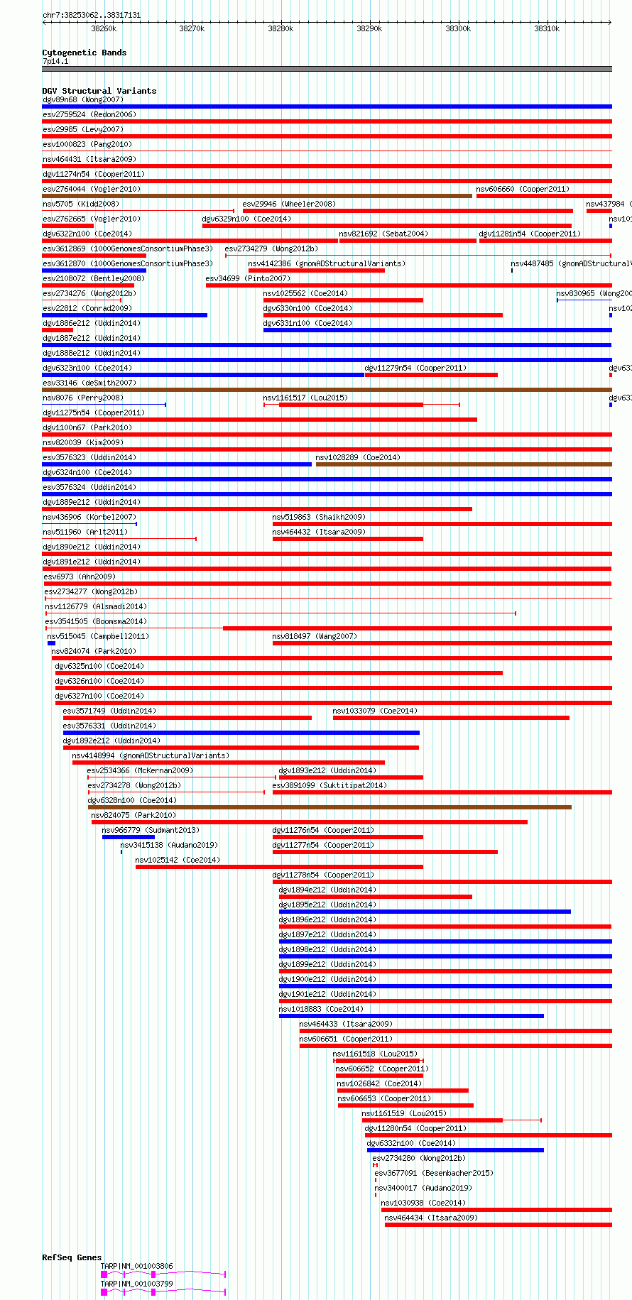 Variant DetailsVariant: dgv1891e212 | Internal ID | 20150347 | | Landmark | | | Location Information | | | Cytoband | 7p14.1 | | Allele length | | Assembly | Allele length | | hg38 | 64070 | | hg19 | 64070 |