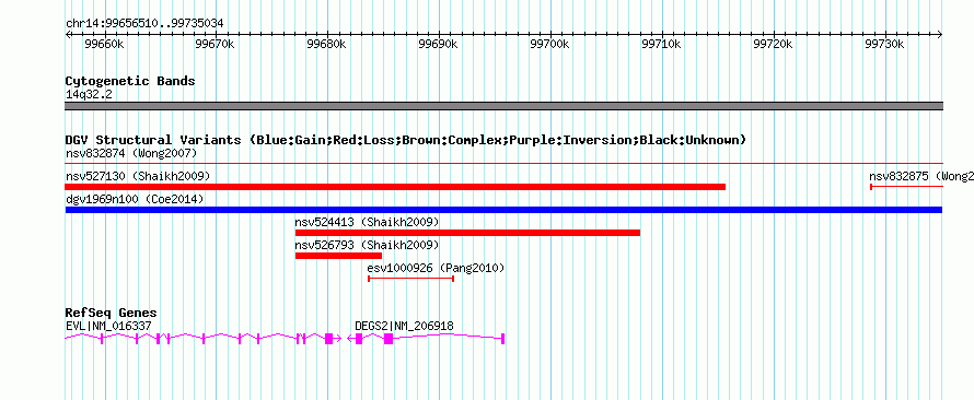 | | Variant Type | CNV gain | | Copy Number | | | Allele State | | | Allele Origin | | | Probe Count | | | Validation Flag | | | Merged Status | M | | Merged Variants | | | Supporting Variants | nsv1053618, nsv1053143 | | Samples | | | Known Genes | DEGS2, EVL | | Method | SNP array | | Analysis | Affymetrix SNP array copy number analysis | | Platform | Affymetrix SNP Array 6.0 | | Comments | | | Reference | Coe_et_al_2014 | | Pubmed ID | 25217958 | | Accession Number(s) | dgv1969n100
