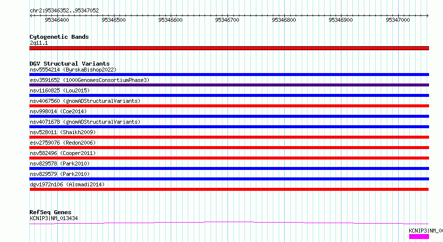 Variant DetailsVariant: dgv1972n106| Internal ID | 22795800 | | Landmark | | | Location Information | | | Cytoband | 2q11.1 | | Allele length | | Assembly | Allele length | | hg38 | 701 | | hg19 | 701 |