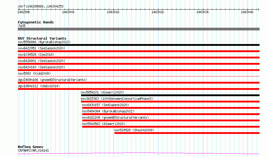 Variant DetailsVariant: dgv1980e212 | Internal ID | 22784907 | | Landmark | | | Location Information | | | Cytoband | 7q35 | | Allele length | | Assembly | Allele length | | hg38 | 5388 | | hg19 | 5388 |
