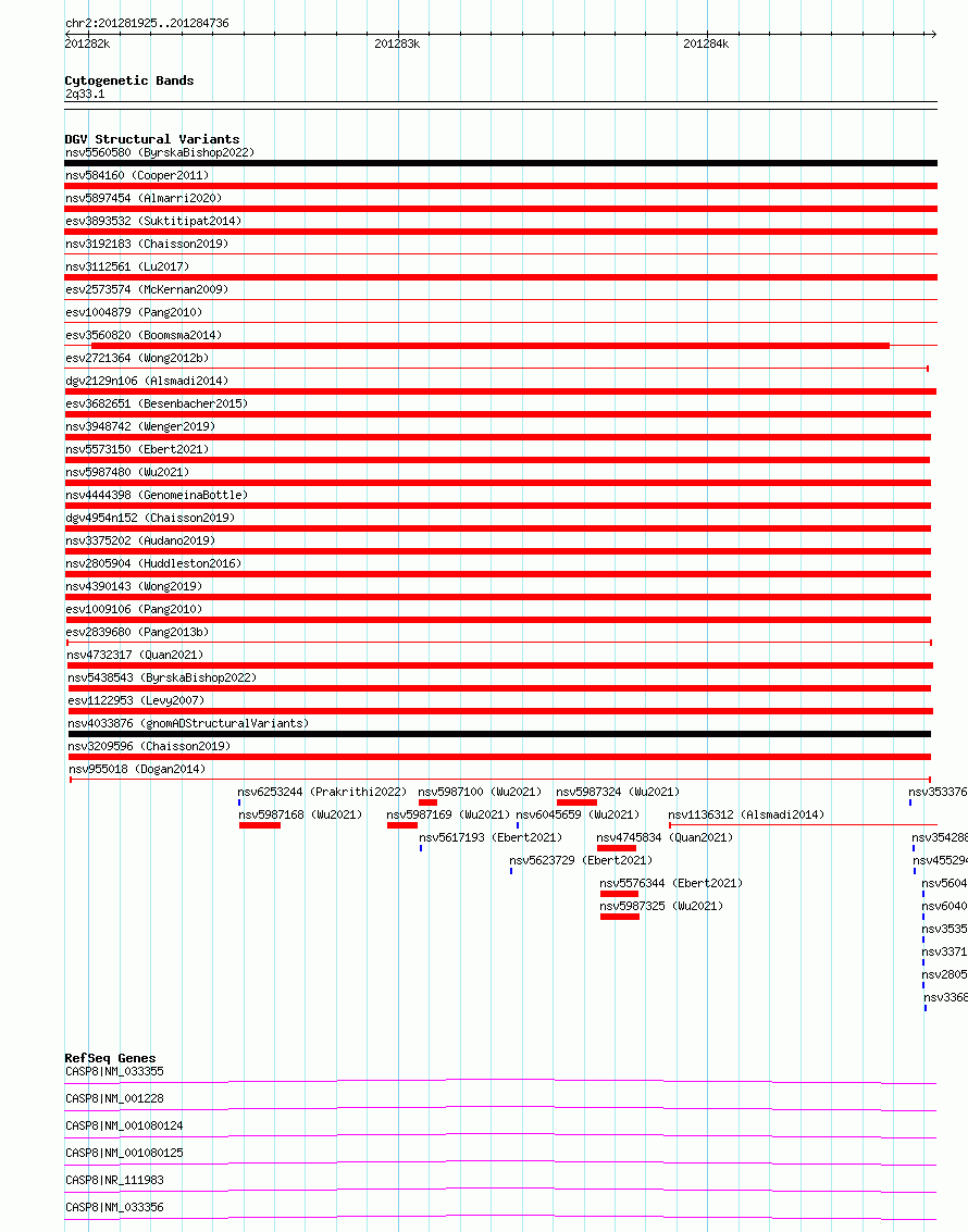 Variant DetailsVariant: dgv2129n106| Internal ID | 22795957 | | Landmark | | | Location Information | | | Cytoband | 2q33.1 | | Allele length | | Assembly | Allele length | | hg38 | 2812 | | hg19 | 2812 |