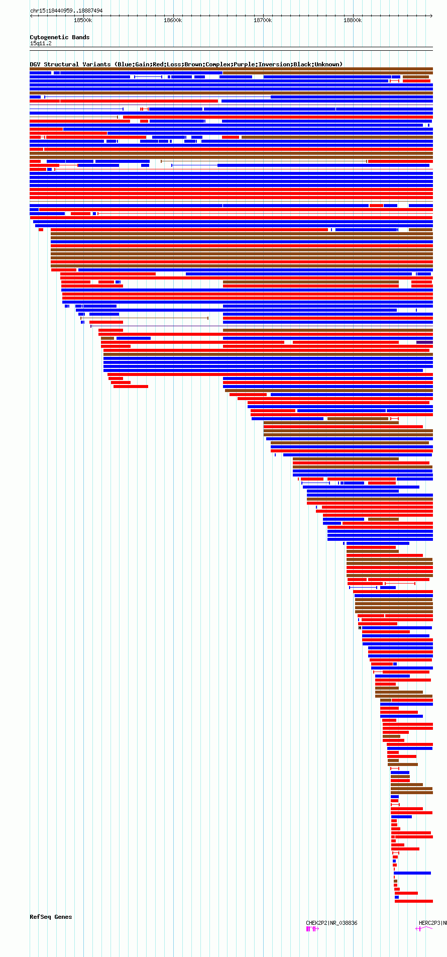 Variant DetailsVariant: dgv2180n100| Internal ID | 22788267 | | Landmark | | | Location Information | | | Cytoband | 15q11.1 | | Allele length | | Assembly | Allele length | | hg38 | 446536 | | hg19 | 446536 | | hg18 | 446536 |