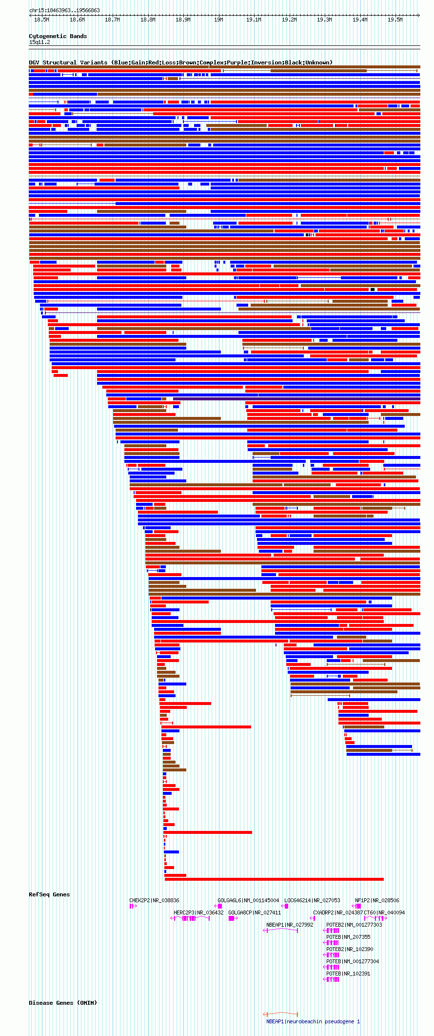 Variant DetailsVariant: dgv2189n100| Internal ID | 22788276 | | Landmark | | | Location Information | | | Cytoband | 15q11.1 | | Allele length | | Assembly | Allele length | | hg38 | 1098180 | | hg19 | 1098256 | | hg18 | 1102901 |