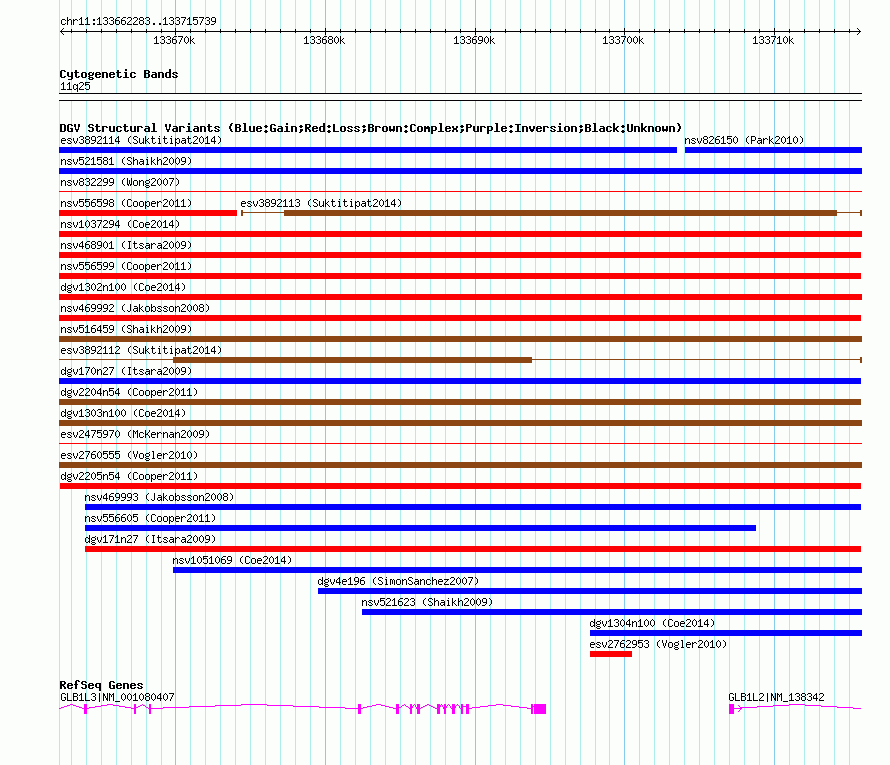 Variant DetailsVariant: dgv2205n54| Internal ID | 20135629 | | Landmark | | | Location Information | | | Cytoband | 11q25 | | Allele length | | Assembly | Allele length | | hg38 | 53457 | | hg19 | 53457 | | hg18 | 53457 |