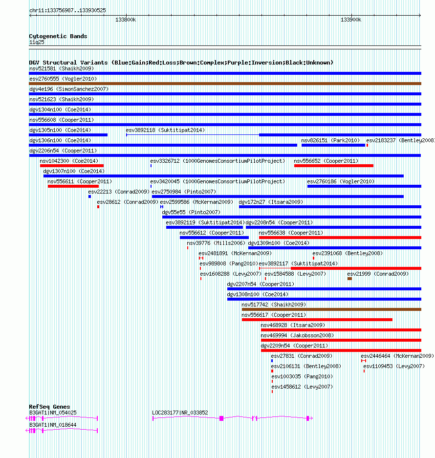 Variant DetailsVariant: dgv2206n54| Internal ID | 20135630 | | Landmark | | | Location Information | | | Cytoband | 11q25 | | Allele length | | Assembly | Allele length | | hg38 | 173539 | | hg19 | 173539 | | hg18 | 173539 |