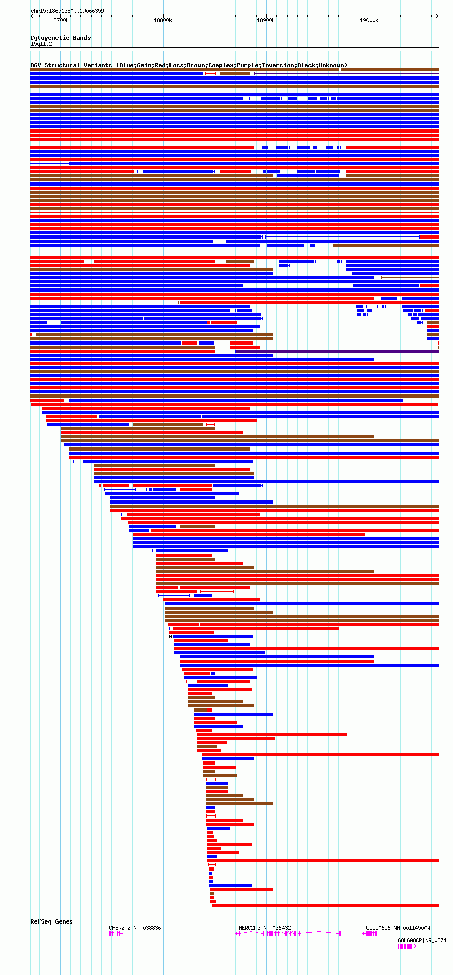 Variant DetailsVariant: dgv2215n100| Internal ID | 22788302 | | Landmark | | | Location Information | | | Cytoband | 15q11.1 | | Allele length | | Assembly | Allele length | | hg38 | 394928 | | hg19 | 394980 | | hg18 | 394980 |