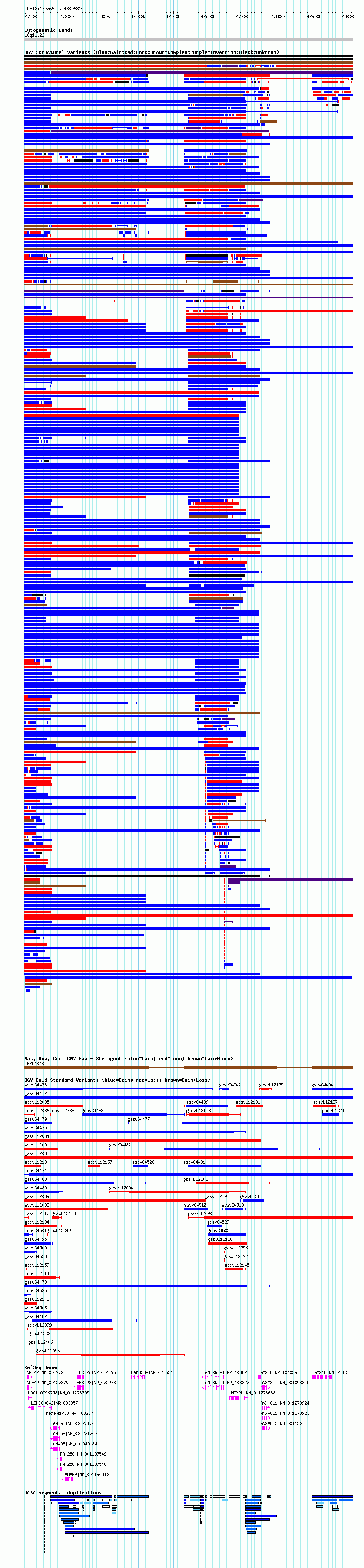 | | Variant Type | CNV gain | | Copy Number | | | Allele State | | | Allele Origin | | | Probe Count | | | Validation Flag | | | Merged Status | M | | Merged Variants | | | Supporting Variants | esv3577061, esv3577116, esv3577127, esv3577072 | | Samples | 400897MD, 400855BD, 401308LD, 400050RL | | Known Genes | AGAP9, ANTXRL, ANTXRLP1, ANXA8, ANXA8L1, ANXA8L2, BMS1P2, BMS1P6, FAM21B, FAM25B, FAM25C, FAM25G, FAM35DP, HNRNPA1P33, LINC00842, LOC100996758, NPY4R | | Method | SNP array | | Analysis | We used four separate algorithms to detect CNVs; Affymetrix Chromosome Analysis Suite (ChAS), iPattern, Nexus and Partek. Our primary analysis was performed based on ChAS CNV calls, which were then supported using the remaining three algorithms to construct a confidence set of CNVs. For all algorithms, we have used 8 probes and >1kb as a base line cutoff for CNV detection. | | Platform | Affymetrix CytoScan HD 2.7M array | | Comments | | | Reference | Uddin_et_al_2014 | | Pubmed ID | 25503493 | | Accession Number(s) | dgv228e212