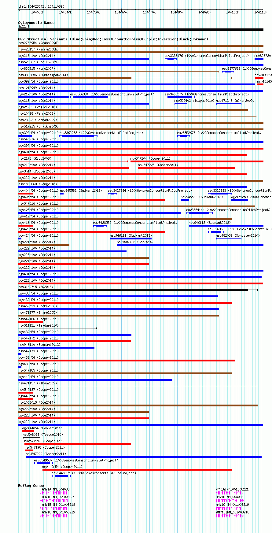 Variant DetailsVariant: dgv229n100| Internal ID | 22786316 | | Landmark | | | Location Information | | | Cytoband | 1p21.1 | | Allele length | | Assembly | Allele length | | hg38 | 87649 | | hg19 | 87649 | | hg18 | 87649 |