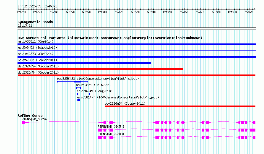 Variant DetailsVariant: dgv2325n54| Internal ID | 20135749 | | Landmark | | | Location Information | | | Cytoband | 12p13.31 | | Allele length | | Assembly | Allele length | | hg38 | 14619 | | hg19 | 14619 | | hg18 | 14619 |