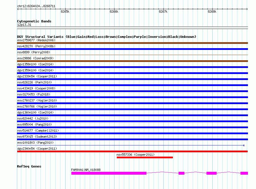 Variant DetailsVariant: dgv2340n54| Internal ID | 22770235 | | Landmark | | | Location Information | | | Cytoband | 12p13.31 | | Allele length | | Assembly | Allele length | | hg38 | 4688 | | hg19 | 4688 | | hg18 | 4688 |