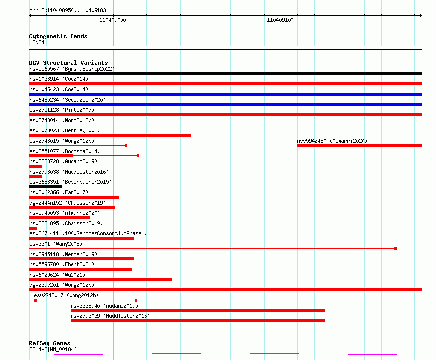 Variant DetailsVariant: dgv239e201| Internal ID | 22759597 | | Landmark | | | Location Information | | | Cytoband | 13q34 | | Allele length | | Assembly | Allele length | | hg38 | 234 | | hg19 | 234 |