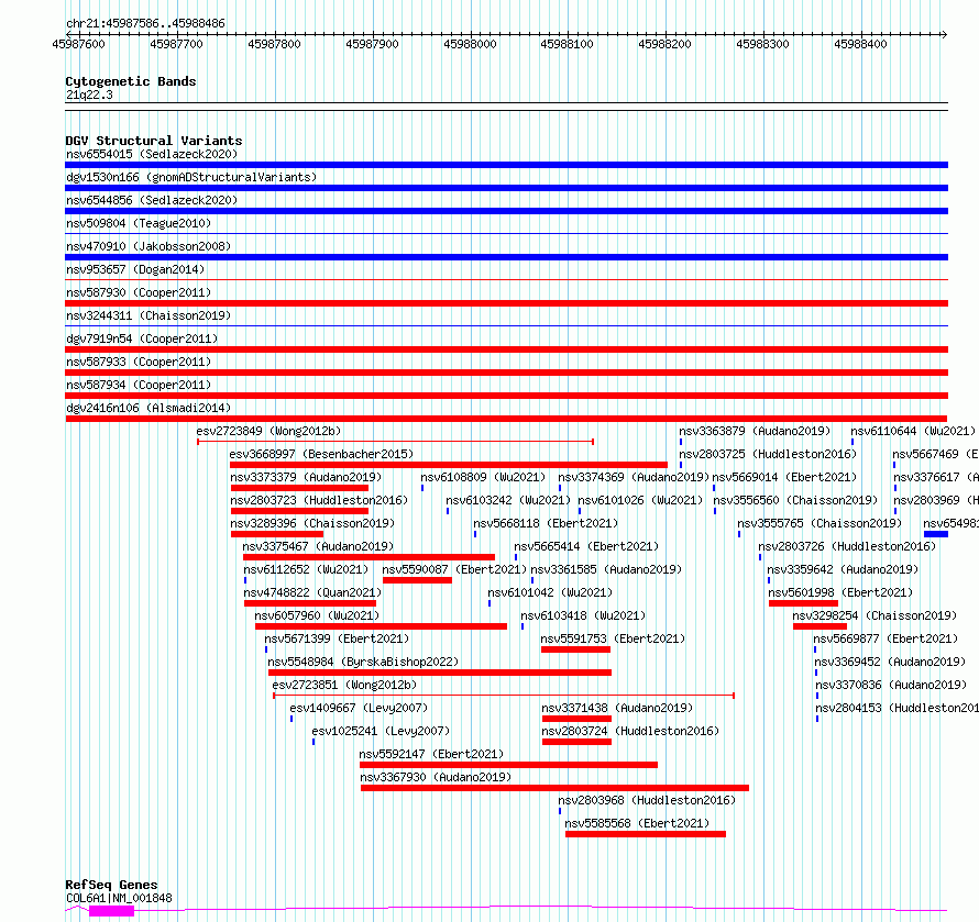 Variant DetailsVariant: dgv2416n106| Internal ID | 22796244 | | Landmark | | | Location Information | | | Cytoband | 21q22.3 | | Allele length | | Assembly | Allele length | | hg38 | 901 | | hg19 | 901 |