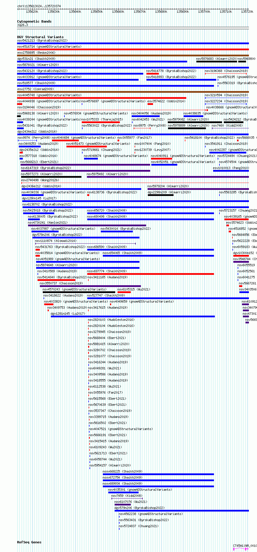 Variant DetailsVariant: dgv2434e212| Internal ID | 22785361 | | Landmark | | | Location Information | | | Cytoband | Xq26.3 | | Allele length | | Assembly | Allele length | | hg38 | 107351 | | hg19 | 126979 |