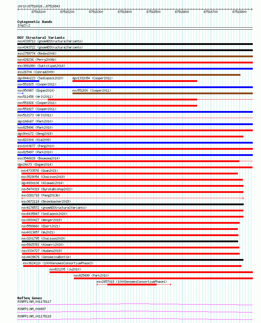 Variant DetailsVariant: dgv24n73| Internal ID | 22782630 | | Landmark | | | Location Information | | | Cytoband | 10q23.2 | | Allele length | | Assembly | Allele length | | hg38 | 818 | | hg19 | 818 |