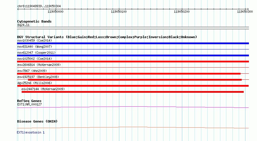 Variant DetailsVariant: dgv252n6 | Internal ID | 22782587 | | Landmark | | | Location Information | | | Cytoband | 8q24.11 | | Allele length | | Assembly | Allele length | | hg38 | 366 | | hg19 | 366 | | hg18 | 366 | | hg17 | 366 |