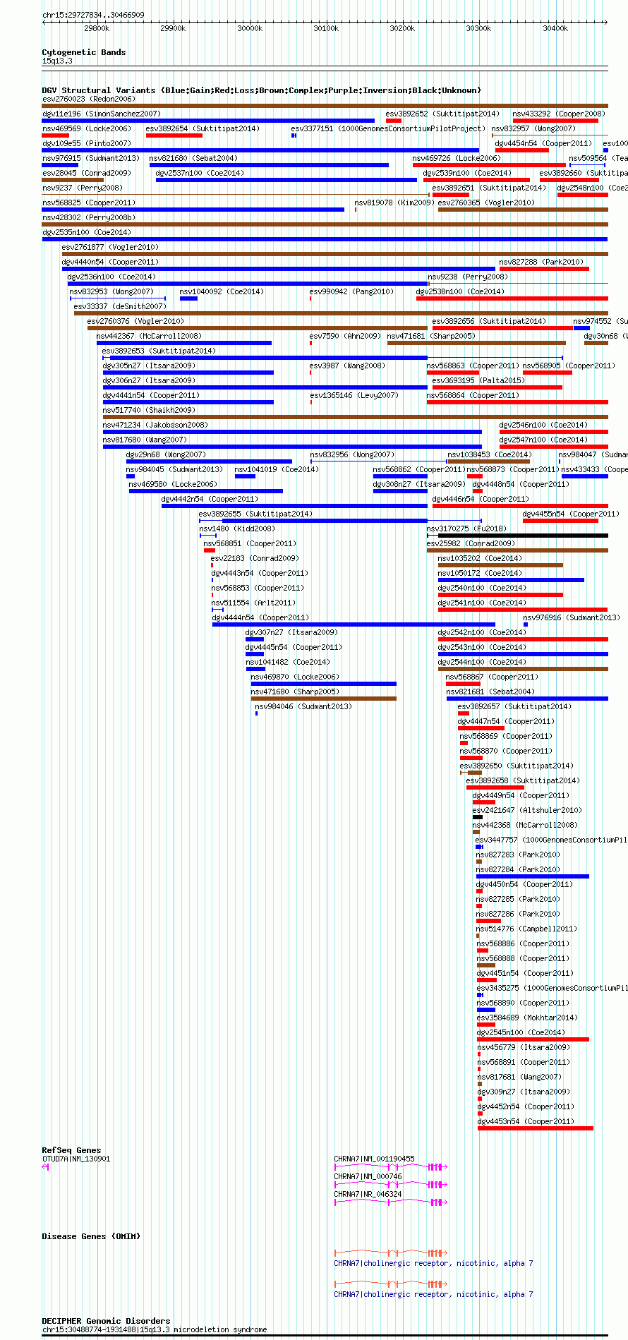 Variant DetailsVariant: dgv2535n100| Internal ID | 22788622 | | Landmark | | | Location Information | | | Cytoband | 15q13.3 | | Allele length | | Assembly | Allele length | | hg38 | 739078 | | hg19 | 739076 | | hg18 | 739076 |