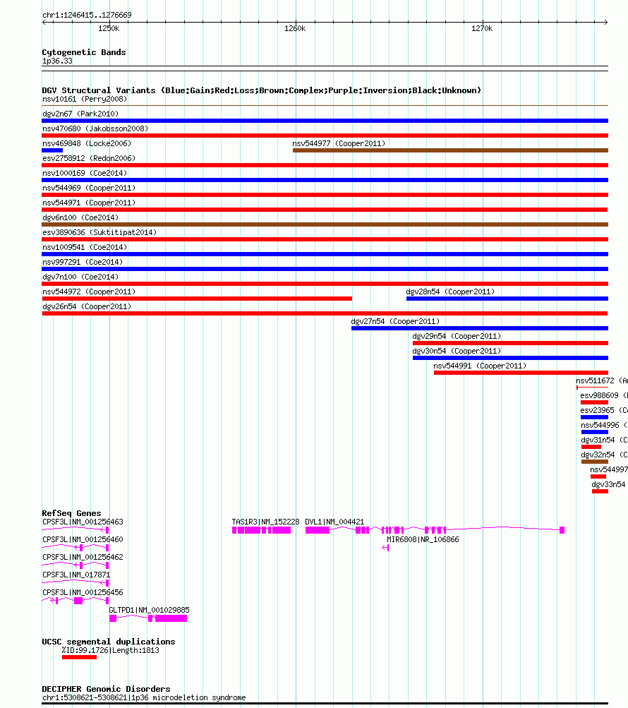 Variant DetailsVariant: dgv26n54| Internal ID | 20133450 | | Landmark | | | Location Information | | | Cytoband | 1p36.33 | | Allele length | | Assembly | Allele length | | hg38 | 30255 | | hg19 | 30255 | | hg18 | 30255 |