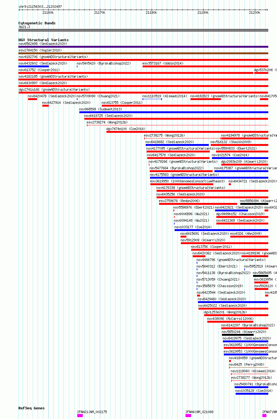 Variant DetailsVariant: dgv2741n166 | Internal ID | 22802640 | | Landmark | | | Location Information | | | Cytoband | 9p21.3 | | Allele length | | Assembly | Allele length | | hg38 | 48195 | | hg19 | 48195 |