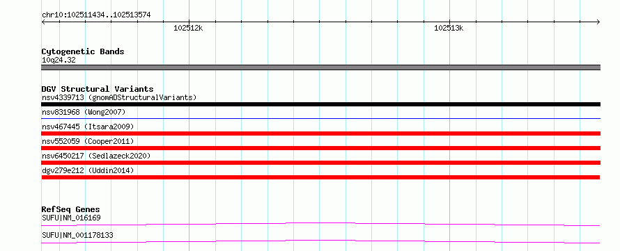 Variant DetailsVariant: dgv279e212| Internal ID | 22783206 | | Landmark | | | Location Information | | | Cytoband | 10q24.32 | | Allele length | | Assembly | Allele length | | hg38 | 2141 | | hg19 | 2141 |