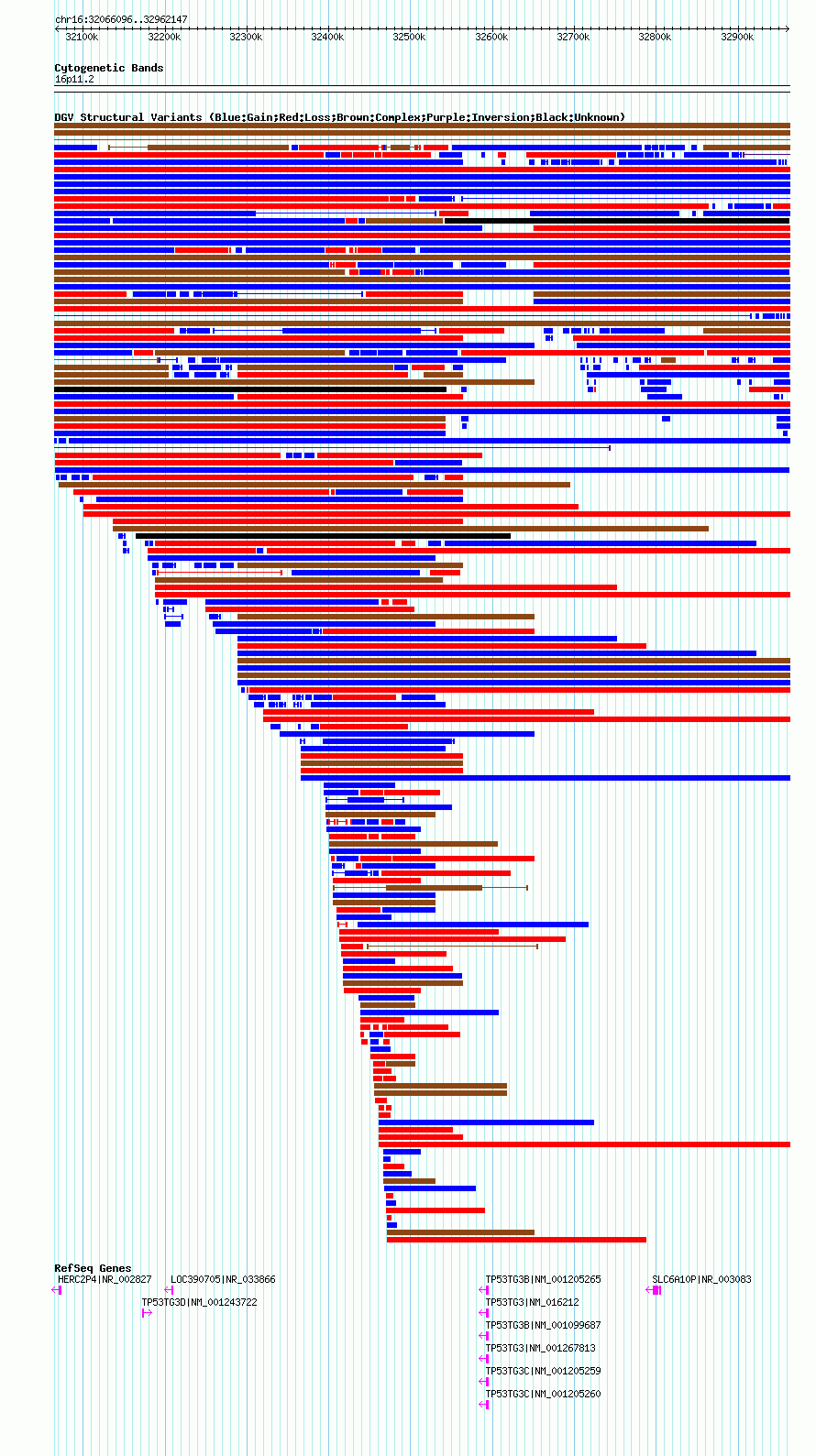 Variant DetailsVariant: dgv2854n100| Internal ID | 22788941 | | Landmark | | | Location Information | | | Cytoband | 16p11.2 | | Allele length | | Assembly | Allele length | | hg38 | 896052 | | hg19 | 896052 | | hg18 | 896052 |