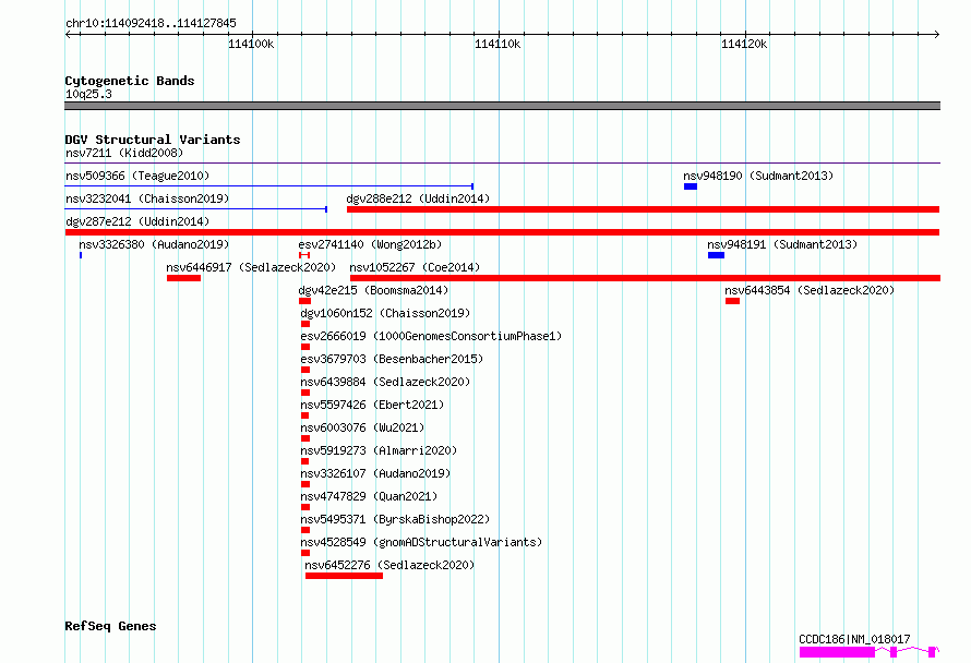 Variant DetailsVariant: dgv287e212 | Internal ID | 22783214 | | Landmark | | | Location Information | | | Cytoband | 10q25.3 | | Allele length | | Assembly | Allele length | | hg38 | 35428 | | hg19 | 35428 |
