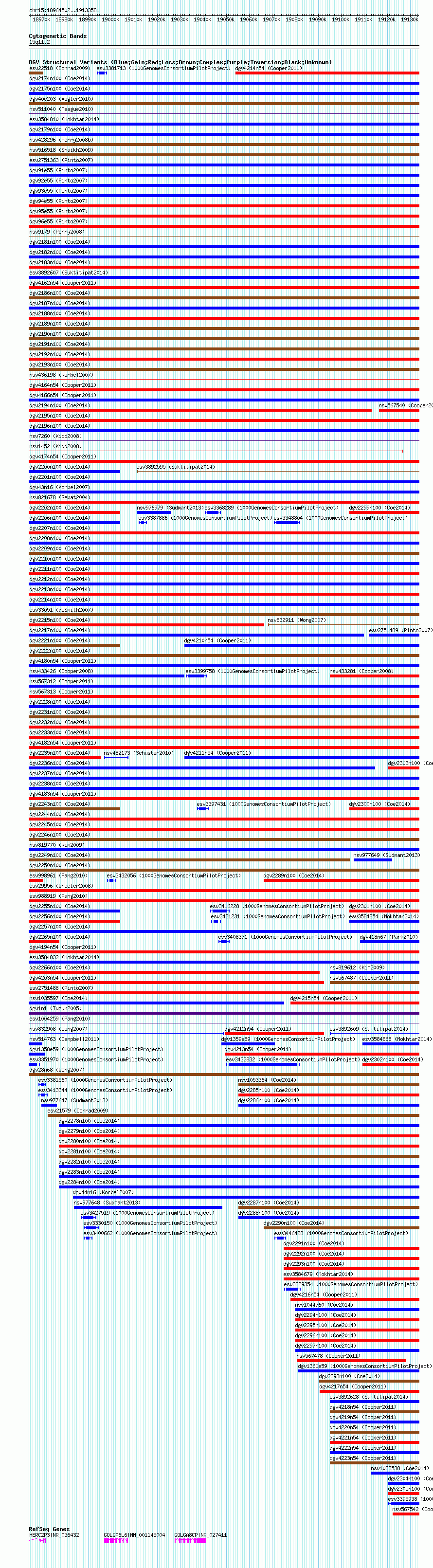 Variant DetailsVariant: dgv28n68 | Internal ID | 22782268 | | Landmark | | | Location Information | | | Cytoband | 15q11.2 | | Allele length | | Assembly | Allele length | | hg38 | 169004 | | hg19 | 169080 | | hg18 | 169080 | | hg17 | 169080 |