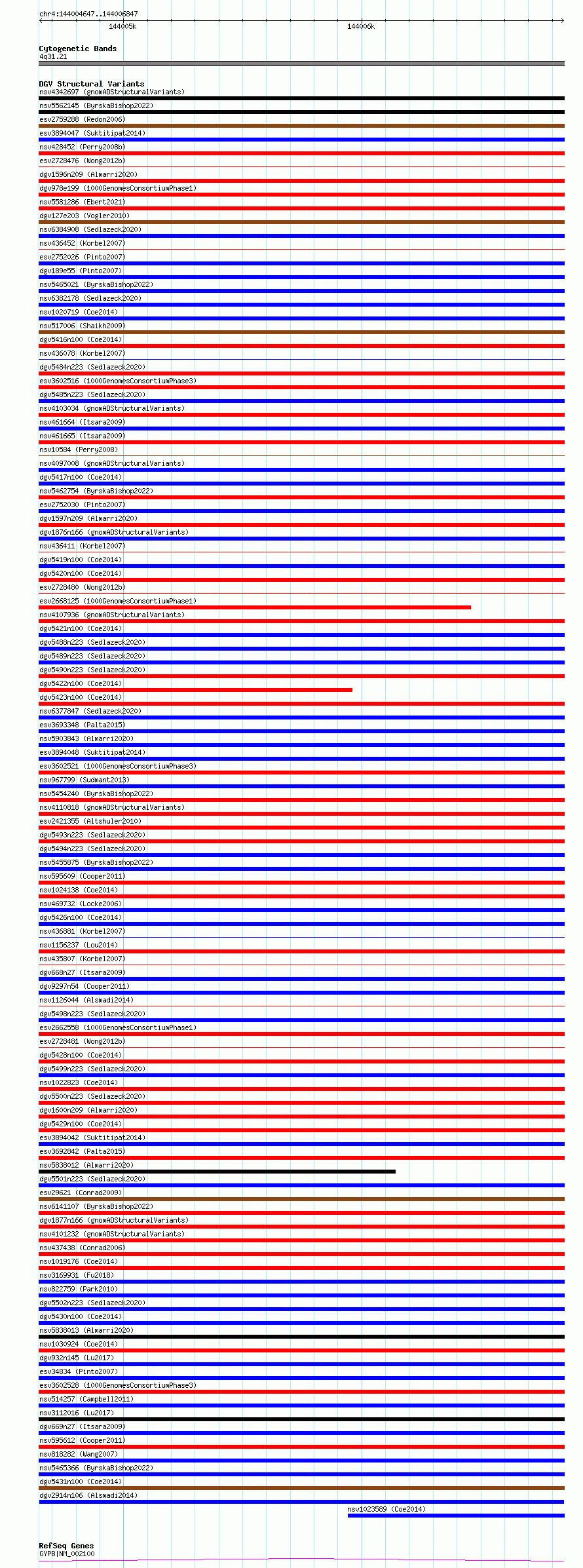 Variant DetailsVariant: dgv2914n106| Internal ID | 22796742 | | Landmark | | | Location Information | | | Cytoband | 4q31.21 | | Allele length | | Assembly | Allele length | | hg38 | 2201 | | hg19 | 2201 |