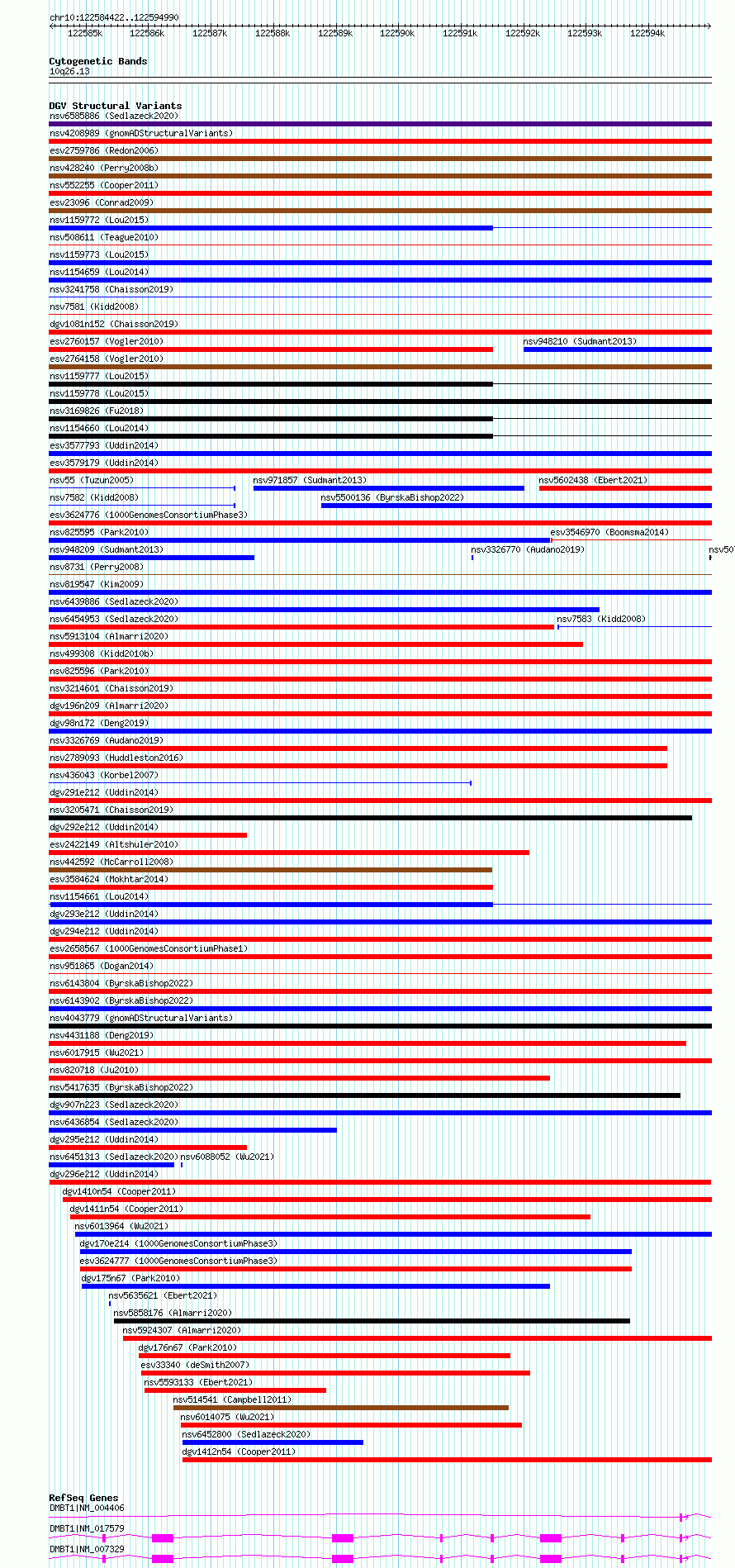 Variant DetailsVariant: dgv296e212 | Internal ID | 22783223 | | Landmark | | | Location Information | | | Cytoband | 10q26.13 | | Allele length | | Assembly | Allele length | | hg38 | 10569 | | hg19 | 10569 |