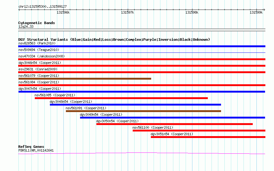 | | Variant Type | CNV gain | | Copy Number | | | Allele State | | | Allele Origin | | | Probe Count | | | Validation Flag | | | Merged Status | M | | Merged Variants | | | Supporting Variants | nsv561088, nsv561089, nsv561082, nsv561080, nsv561083, nsv561081, nsv561092, nsv561093 | | Samples | | | Known Genes | FBRSL1 | | Method | SNP array | | Analysis | Illumina SNP array copy number analysis | | Platform | Not reported | | Comments | | | Reference | Cooper_et_al_2011 | | Pubmed ID | 21841781 | | Accession Number(s) | dgv3047n54