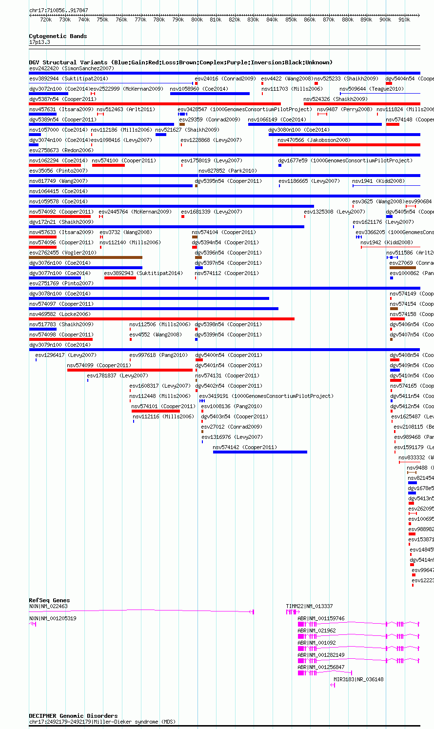 Variant DetailsVariant: dgv3079n100| Internal ID | 22789166 | | Landmark | | | Location Information | | | Cytoband | 17p13.3 | | Allele length | | Assembly | Allele length | | hg38 | 206992 | | hg19 | 206992 | | hg18 | 206992 |