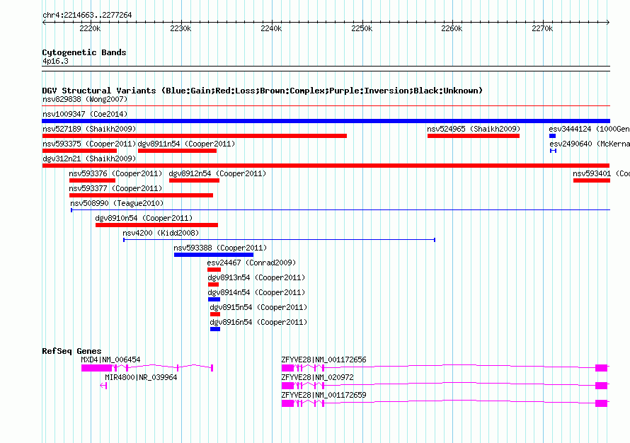 | | Variant Type | CNV loss | | Copy Number | | | Allele State | | | Allele Origin | | | Probe Count | | | Validation Flag | | | Merged Status | M | | Merged Variants | | | Supporting Variants | nsv527925, nsv526969 | | Samples | | | Known Genes | MIR4800, MXD4, ZFYVE28 | | Method | SNP array | | Analysis | Sample-level CNVs | | Platform | GPL6434 | | Comments | | | Reference | Shaikh_et_al_2009 | | Pubmed ID | 19592680 | | Accession Number(s) | dgv312n21